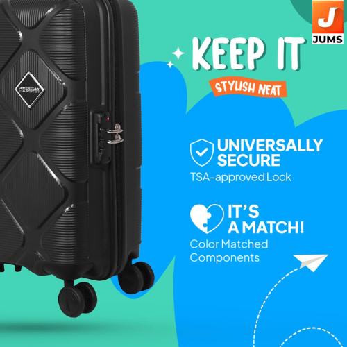 Presenting to you, the American Tourister Instavibe polypropelene hardside! Its Pack Smart Interiors with Hidden Pocket create umpteen amounts of space for your belongings, while the Color Matched Components add an oomph of asthetic. Curated keeping in mind the need to pack smart, secure and spacious, Instavibe boasts 30 liters of capacity with the dimensions 36 x 55 x 23.5cm (LxHxW). That’s not all - the Double Capped Wheels lets you glide through the crowds effortlessly. With our 3-year warranty, this bag will be by your side through all your globe trotting adventures.
