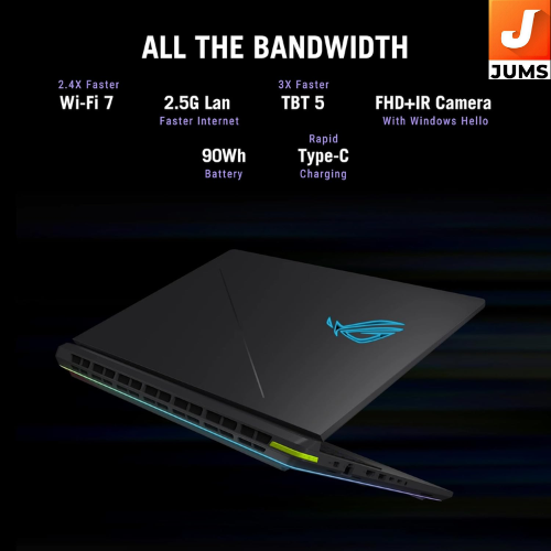 CPU: Intel® Core™ Ultra 9 275HX — 24 cores/24 threads (up to ~5.4 GHz) with AI Boost NPU for AI-enhanced workloads. ASUS Store GPU: NVIDIA® GeForce RTX 5070 Laptop GPU, 8 GB GDDR7 with 115 W TGP and ROG Boost for extra gaming performance. ASUS Store Display: 16″ 2.5K (2560 × 1600) ROG Nebula panel — 240 Hz refresh, 3 ms response, 16:10 aspect ratio, ~500 nits brightness, wide colour and smooth visuals for fast-paced games. ASUS Store Memory: 32 GB DDR5-5600 RAM (dual-channel, expandable up to 64 GB). ASUS Store Storage: 1 TB PCIe 4.0 NVMe SSD — fast boot times & quick game loads. Battery: 90 Wh for decent unplugged use (gaming on battery will reduce runtime). ASUS Store OS & Software: Windows 11 Home + Microsoft 365 Basic (1 yr) + Office Home 2024 (varies by retailer). ASUS Store Design: Eclipse Gray ROG chassis with ROG intelligent cooling & RGB accents typical of the Strix line. ASUS Store Connectivity: Modern ports include USB-C / USB-A, HDMI, Ethernet, Wi-Fi 6E/Bluetooth, plus MUX Switch & NVIDIA Advanced Optimus for performance efficiency.