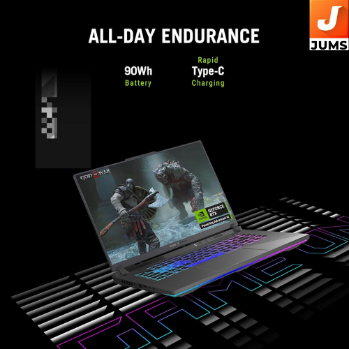 Model: ASUS ROG Strix G16 (2025) – Ryzen 9 8940HX + RTX 5050 configuration Processor: AMD Ryzen™ 9 8940HX (16 cores, up to ~5.3 GHz) — top-tier mobile CPU for gaming and multitasking. myg.in Graphics: NVIDIA® GeForce RTX 5050 Laptop GPU with 8 GB GDDR7 — handles modern games with ray-tracing and DLSS support. maxware.in Memory: 16 GB DDR5-5200 RAM (expandable up to 64 GB via two SO-DIMMs). maxware.in Storage: 1 TB PCIe 4.0 NVMe M.2 SSD — fast game load times and plenty of space for titles/apps. maxware.in Display: 16″ FHD+ (1920×1200) IPS-level panel, 165 Hz refresh rate, 16:10 aspect ratio with 3 ms response — smooth visuals for games and productivity. maxware.in Battery: 90 Wh battery for longer gaming or work sessions. Business Standard Operating System: Windows 11 Home (pre-installed) Software Bundle: Microsoft 365 Basic (1 yr cloud) + Office Home 2024 (varies by retailer). Vishal Peripherals Keyboard & Build: 4-Zone RGB backlit keyboard with dedicated Copilot key, stylish Eclipse Gray design. Vishal Peripherals Connectivity: Wi-Fi 6E, Bluetooth 5.x, HDMI 2.1, Ethernet, USB-C/USB-A ports. Business Standard Expandability: RAM up to 64 GB; storage upgradeable
