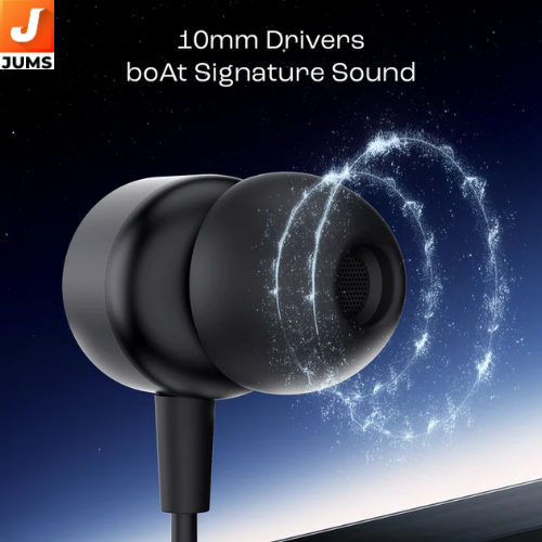 10 mm dynamic drivers tuned for strong, punchy bass and balanced mids, making them suitable for a variety of music genres. BoAt signature sound profile with emphasis on bass and clarity across frequencies. In‑line microphone enables hands‑free calls and voice chats. Integrated remote controls let you play/pause music and answer/reject calls without touching your device. Wide frequency range (~20 Hz–20 kHz) covers full audible sound spectrum.