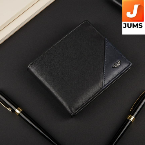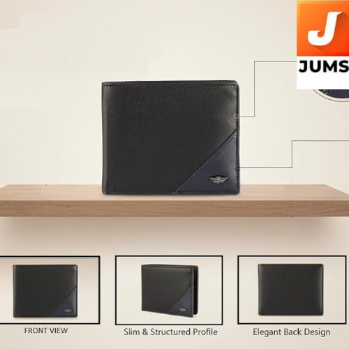 Genuine Leather Bi-Fold Wallet I Coin Pocket & Card Slots I Navy / Black_(B09NM7LB4Q) (Jet Black/Jet Navy)