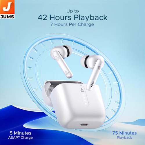 The boAt Airdopes 141 are true wireless earbuds built for everyday audio needs, combining reliable performance with long battery life. They use dual 8 mm dynamic drivers to deliver boAt’s signature sound, offering a good balance of deep bass, clear mids, and crisp highs. Whether you’re listening to music, watching videos, or taking calls, the sound quality is rich and engaging, suitable for a wide range of content and genres. Battery life is a highlight of these earbuds — you get up to 6 hours of playback per charge, and with the charging case, the total backup extends to around 42 hours, making them ideal for long days out, commutes, or weekend use without frequent charging. The Type‑C charging port and ASAP Fast Charge technology let you gain around 75 minutes of playtime with just a 5‑minute charge, ensuring you’re always ready to go even when short on time. Connectivity is handled by Bluetooth 5.0/5.x, which provides fast pairing and stable signals with your smartphone or tablet.