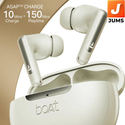 The boAt Airdopes 141 ANC are premium True Wireless Stereo (TWS) earbuds designed for an immersive audio experience, combining Active Noise Cancellation (ANC) with high-quality sound and modern features. The 10mm dynamic drivers provide deep bass, clear mids, and high-end treble, ensuring that you get a balanced audio experience whether you're listening to music, watching movies, or gaming. The standout feature of the Airdopes 141 ANC is the Active Noise Cancellation (ANC), which helps to block out ambient noise, making it perfect for situations where you need to focus or enjoy your audio without distractions. This is especially useful in noisy environments like public transport or cafes. In addition, the Environmental Noise Cancellation (ENC) ensures your voice is clearly transmitted during calls, even in crowded or noisy places.