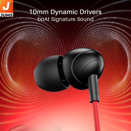 10 mm Dynamic Drivers: Deliver boAt’s signature bass‑heavy audio with clear mids and highs across various genres. In‑Line Microphone & Controls: Built‑in mic lets you take calls and control playback or activate voice assistants easily. Wide Frequency Range: Covers approximately 20 Hz – 20 kHz for rich and detailed audio. 3.5 mm Audio Jack: Standard wired connection compatible with most smartphones, tablets, laptops, and audio devices. 120 cm Cable: Tangle‑resistant cable length that gives comfortable reach for daily use. Lightweight, Comfortable Fit: ABS + glossy eartips offer a snug and fatigue‑free fit for longer listening sessions. Voice Assistant Support: One‑press access to voice assistants like Siri or Google Assistant