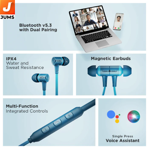 Rockerz 245 series is a budget-friendly wireless Bluetooth neckband designed for everyday entertainment, calls, and light gaming. It delivers long playback — up to about 20–30 hours on a single charge depending on the specific variant, along with fast charging support that adds several hours of playtime from a short charge.