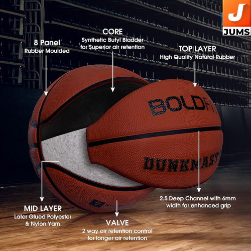Brand: Boldfit Type: Professional Basketball / Training & Match Ball Size: Size 7 (standard adult basketball size) Usage: Indoor & Outdoor training, matches, casual play