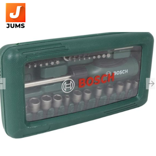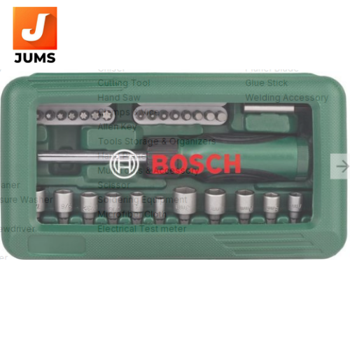 Brand Bosch ISIN EBOAUQ9NDF Offer ID 1006339515 Brand Model Number 2607019504 Size 46 Pcs Brand Colour Green Handle material Comfort Grip Material Aluminium Insulated No Item Weight 760 g Type Screw Driver Set Usage Tighten Or Loosen Fastener Package Contents 1 Set Contains 46 Pcs Screwdriver Set. 32 Screwdriver Bits L= 30 mm (Phillips: 0/1/2/3), (Pozidriv: 0/1/2/3), (Slotted: 3/4/4.5/5/6/7/8/9), (Hexagonal Bit: 1.5/2/2.5/3/4/5/5.5/6), (Torx: 8/10/15/20/25/27/30/40) 12 Nutsetters for Hex Screws 3/16", 1/4", 5/ View more View more Pack Of 1 Warranty Not Applicable Country of Origin China Customer Care Address Toll Free: 1800-425-8665 Imported By Bosch Ltd., Post Box No: 3000, Hosur Road, Adugodi, Bangalore - 560030