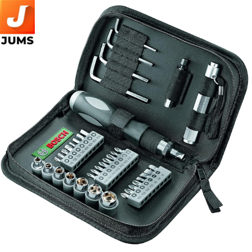 The Bosch 38‑Piece Mixed Screwdriver Set is a versatile, compact toolkit designed for both professional and DIY use. Crafted with durable cobalt steel components, this set offers universal compatibility across a wide range of fasteners and tasks. It includes 23 screwdriver bits, 7 nutsetters, a universal holder, hex keys (Allen wrenches), a ratcheting driver for efficient fastening, and a torch for added convenience in low‑light environments. Portable and well‑organized, this set is ideal for home repairs, furniture assembly, automotive work, electronics, and general maintenance projects — delivering reliable performance in a handy, travel‑ready package.