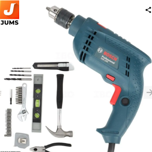 Brand Bosch ISIN EQHKNZYTRO Offer ID 1000159613 Brand Model Number GSB 10RE Kit Size 10 mm Brand Colour Blue Material Plastic & Metal Item Weight 4 kg Maximum Speed (RPM) 2600 rpm Power Type Corded Power Source AC Usage Multipurpose Package Contents 1 pc Plastic carry case, 1pc -Drill bit - masonry - 5 pcs - 4,5,6,8,10mm - Drill bit - metal - 5 pcs - 2,3,4,5,6mm - Drill bit - wood - 4 pcs - 4,5,6,8mm - Claw hammer with rubber grip- 1pc - Screw driver bit set - 10 pcs - PH1,PH2,PZ1,PZ2,S4,S6,H4,H5,T2 Pack Of 1 Warranty 12 months Country of Origin India Customer Care Address 1800-425-8665 (Toll free) Imported By Bosch Ltd., Post Box No: 3000,Hosur Road, Adugodi, Bangalore - 560030, India, Customer care No - 18004258665 Manufactured By Bosch Limited (Power Tools), Bosch Ltd., Post Box No: 3000,Hosur Road, Adugodi, Bangalore - 560030, India Packed By Bosch Ltd., Post Box No: 3000,Hosur Road, Adugodi, Bangalore - 560030, India, Customer care No - 18004258665