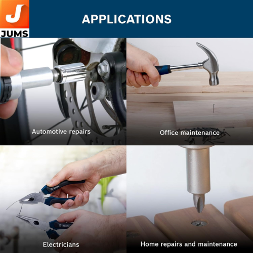 Professional-Grade Tools: Includes a range of essential hand tools suitable for various jobs—from basic household repairs to light professional work. Durable & Rust-Resistant: Tools are built from high-quality materials with a rust-resistant finish to ensure long life and sustained performance. Ergonomic Design: Each tool has user-friendly grips and ergonomic shaping to enhance comfort and control during extended use. Precision Tools Included: The set contains precision components (like screwdrivers and bits) that make detailed tasks easier and more accurate. Secure Hard Case: Comes with a sturdy, organized hard case that keeps tools securely in place, protects them from damage, and makes storage and transport easier. Compact & Portable: The compact case design makes the kit easy to carry and store without taking up much space. Versatile Utility: Suitable for general repairs, automotive work, furniture assembly, and DIY projects around home or workshop.