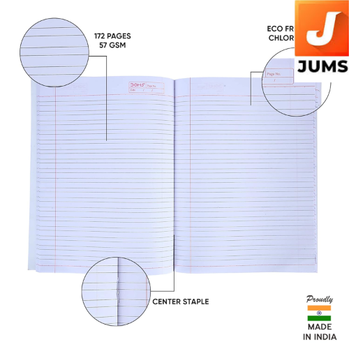 Doms Brown Cover Notebook | 3 In 1 (Dl/Rb/M.Sq) | Ruled | 57GSM | 172 Pages | 18 x 24 cm | Pack of 6