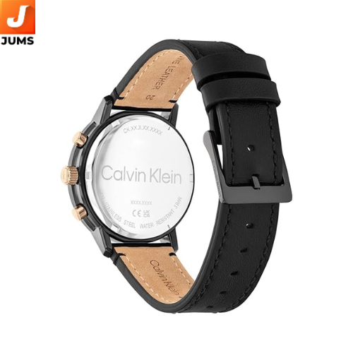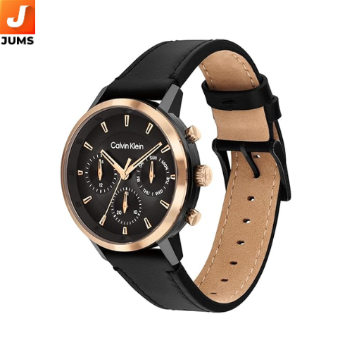 The Calvin Klein Gauge Quartz Multifunction Black Round Dial Men's Watch combines functionality and modern design, perfect for the man who appreciates both style and precision. The black round dial features a multifunction display, which includes the date, day, and time, making it a versatile choice for everyday wear. The silver-tone hands and markers contrast sharply against the black dial, enhancing readability and giving the watch a sleek, contemporary look. Crafted with a stainless steel case, this watch boasts durability while offering a polished and refined aesthetic. The stainless steel bracelet complements the case, ensuring comfort and long-lasting wearability. The watch is powered by a reliable quartz movement, ensuring accurate timekeeping with minimal maintenance.