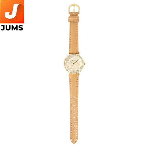 This Casio Enticer ladies’ analog watch blends classic style with everyday functionality, featuring a gold‑tone round dial and a brown leather strap for a refined and feminine look. It’s powered by a quartz movement for accurate and dependable timekeeping and uses mineral glass to protect the dial from everyday scratches. The stainless‑steel case and water‑resistant design make it suitable for daily wear, whether at work, casual outings, or social occasions.