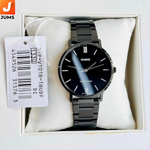 Quartz Movement: Battery‑powered quartz mechanism for accurate and consistent timekeeping — a hallmark of Casio analog watches. Analog Display: Traditional three‑hand layout (hour, minute, second) for easy reading and timeless style. Day/Date Window (in many variants): Practical calendar display on select models so you can see the day/date at a glance.Black Dial: Sleek, minimalist black face that pairs well with various outfits and occasions. Stainless Steel Case and Strap (common): Durable metal build with a solid feel — enhances both longevity and style. Mineral Glass Crystal: Scratch‑resistant mineral glass protects the dial and keeps the watch looking clear and neat. Versatile Sizes: Casio Enticer models range from modest (~37–45 mm) to larger dial sizes, accommodating different wrist preferences.