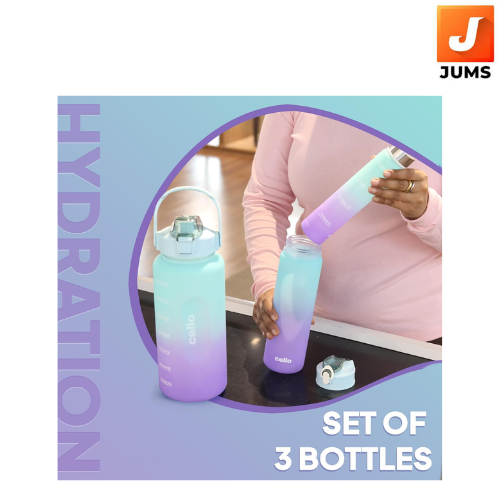 CELLO All Day Set of 3 Pieces Water Bottles Daily Use, Sea Green (310ml, 790ml, 2085ml) | BPA Free Leakproof Lightweight Easy to Carry Different Sizes Water Bottle For School, Workout, Gym & Office