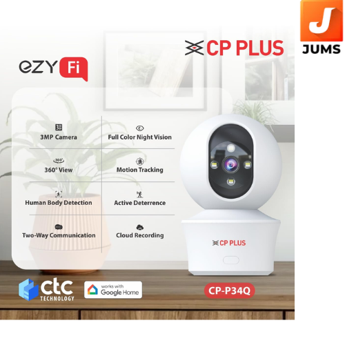 with 360° Pan & Tilt | View & Talk | Smart Detection Suite | Night Vision 30 Mtr | Cloud Recording | CTC Cyber Secure Tech | EZ-P34Q