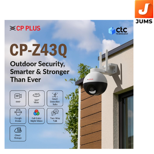 360° Pan & Tilt | Full-Color Night Vision | CTC Cyber Secure Tech | Smart Detection Suite | View & Talk | OK Google | Cloud Recording | CP-Z43Q