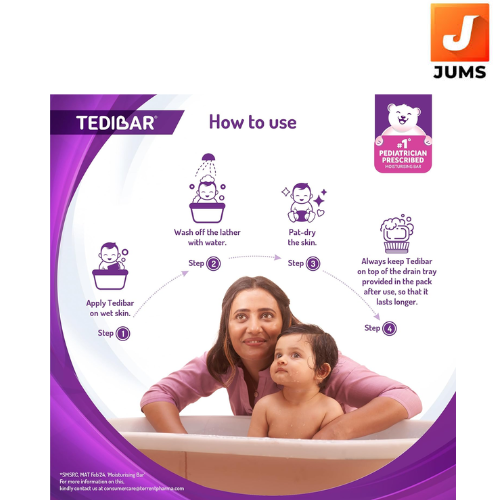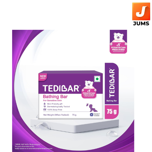 Tedibar is the No. 1 baby moisturizing bathing bar prescribed and supported by Paediatricians.Tedibar being soap-free and alkali-free offers the best protection for your little one’s skin. It hydrates the baby's skin and retains moisture. Recommended to maintain baby' skin pH and prevent skin problems like rashes and dryness.