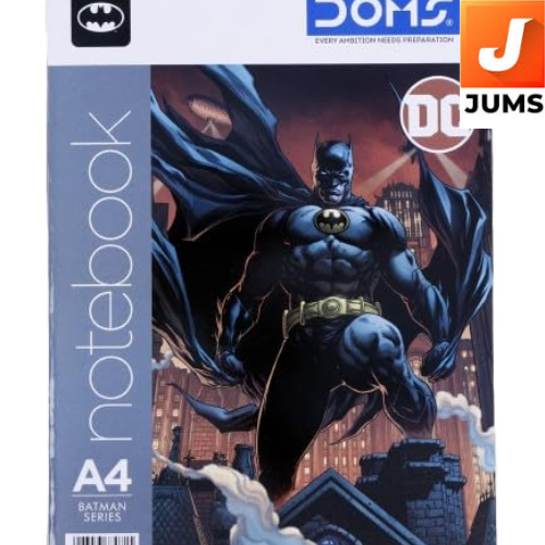 Unleash your inner superhero with the DOMS A4 Single Line Notebook - DC Batman Series. Featuring a bold and iconic Batman cover, this notebook is a must-have for students, collectors, or anyone who loves stylish stationery. Its A4 size (29.7 x 21 cm) offers generous space for writing, doodling, or planning, while the soft cover and pinning binding provide both flexibility and durability. With 172 ruled pages, it’s perfect for class notes, homework, journaling, or creative ideas. Crafted with high-quality pape