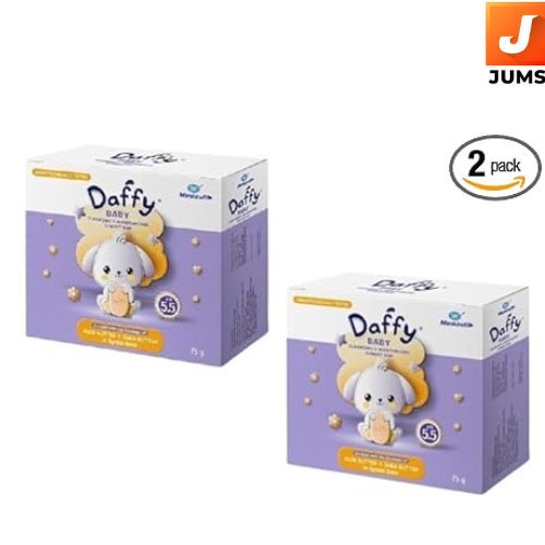 If you're looking for a gentle, soap-free cleanser, the Daffy Baby Bathing Bar is perfect. It has a pH balance of 5.5 (matching baby skin) and is enriched with Aloe Vera & Shea Butter to prevent dryness.