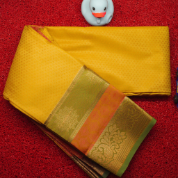 A graceful mustard yellow saree featuring intricate golden zari weaving and a luxurious border, perfect for festive and traditional occasions.