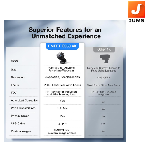 Unmatched 4K Clarity: Capture ultra-clear video with resolutions up to 4K@30FPS and 1080P@60FPS, ideal for remote meetings, online education, live streaming, and gaming.