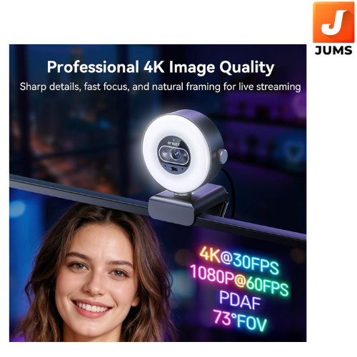 | Special Feature | 1/2" Larger Sensor, 4 Lighting Modes: Cool White, Warm White, Natural White, and Ambient Light, 4K webcam with Ring light, 6 Ambient Light colors: Red, Orange, Yellow, Cyan, Blue, and Purple, AI Imaging |