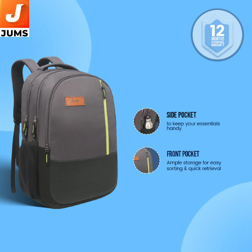 Material: Made from durable Matty/polyester fabric for everyday use. Closure: Zip closure for secure access. Unisex Style: Simple black & grey colour scheme suitable for students and professionals.Capacity: Approx. 18 L — compact yet enough for daily essentials. Compartments: 1 main compartment for books, gear, and larger items. 1 front pocket for quick‑access items. Laptop Compatibility: Laptop‑compatible pocket (fits most 15.6 ″ devices). Organizer Panel: Internal organiser helps sort small accessories.
