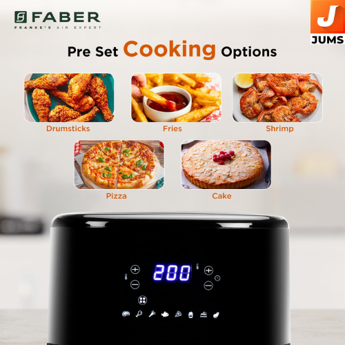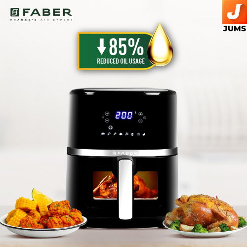 The Faber 6 L 1500 W Digital Air Fryer is a versatile kitchen appliance for family-sized meals, designed to help you cook healthier versions of your favourite dishes with significantly less oil. Its 360° Rapid Air cooking technology ensures even heat distribution, producing crispy and delicious results across a variety of foods while cutting down fat by up to ~85 % compared to traditional deep frying.