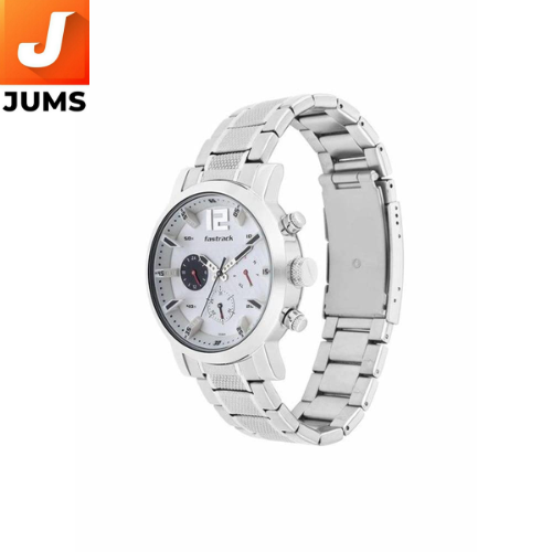 Brand: Fastrack Model: Fastfit Type: Quartz Multifunction Dial Color: White Dial Shape: Round Strap Material: Silver Stainless Steel Case Material: Stainless Steel Movement: Quartz (Battery-powered) Functions: Time, Date, Day (Multifunctional display) Water Resistance: Yes, splash-resistant Clasp Type: Deployment clasp Style: Casual/Sporty Gender: Men (Guys) Warranty: 2 Years Manufacturer's Warranty Special Features: Multifunctional display (Time, Day, Date) Sleek, polished silver stainless steel strap Modern and sporty design for daily wear
