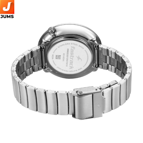 Brand: Fastrack Model: Groove Type: Quartz Analog Watch Gender: Women Dial: Teal with bold hour markers and a stylish design Strap: Stainless steel, silver-tone for a modern look Movement: Quartz movement for accurate timekeeping Water Resistance: 30 meters (splash-resistant) Case Material: Stainless steel, ensuring durability and comfort Dial Size: Medium-sized, suitable for most wrist sizes Design: Trendy, bold, and stylish Versatility: Ideal for casual wear and day-to-day activities