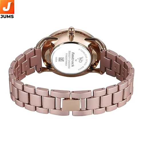 Brand: Fastrack Model: Vyb Charmer Type: Quartz Analog Watch Gender: Women Dial: Pink with minimalist design and easy-to-read hour markers Strap: Stainless steel, silver-tone for a sleek look Movement: Quartz movement for precise timekeeping Water Resistance: 30 meters (splash-resistant) Case Material: Stainless steel, lightweight and durable Dial Size: Medium-sized, ideal for most wrist sizes Design: Elegant, simple, and feminine Versatility: Perfect for casual, office wear, and semi-formal occasions