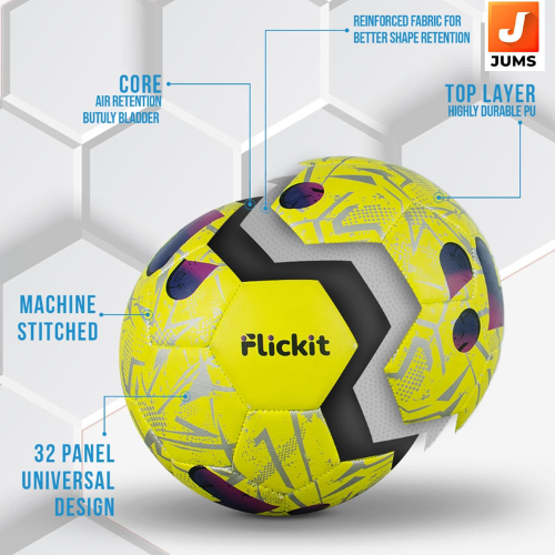 Smart Training Integration: Connect with the Flickit app to track performance, monitor drills, and receive personalized feedback for skill improvement. | Match-Ready Quality: Built for training, matches, and casual play with pro-level durability. 32-Panel PU Build: Reinforced stitching ensures consistent bounce and long-lasting performance
