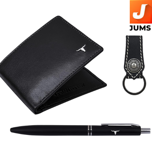 Presenting to you, the Gavin Leather Wallet, Keychain and Pen Combo Gift Set for Men of all age groups. We at Urban Forest, strive for fine quality and uniqueness. All our products are designed keeping in mind the Best Interests of our Customers and this time too, we are offering something that bears the unique stamp of Our Craftsmanship. It is specially curated with a genuine quality leather wallet, a leather key chain and a pen, signature style statement for men.