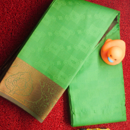 This beautifully crafted saree comes in a striking parrot green body paired with a contrast brown pallu, giving it a classic and festive appeal. The saree features subtle woven patterns across the body and intricate motifs on the pallu, making it perfect for weddings, cultural events, and traditional celebrations.