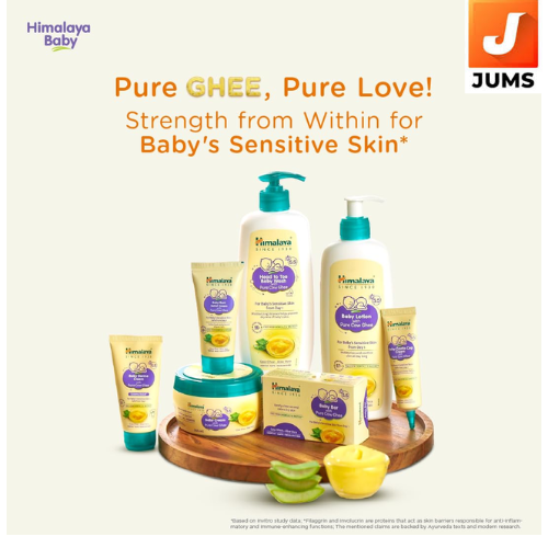 Himalaya Ghee Bar With Pure Cow Ghee and Aloe Vera, a soap-free cleansing bar specially formulated for newborns and babies with sensitive skin, atopic dermatitis and eczema-prone skin. Enriched with Pure Cow Ghee and soothing Aloe Vera, it gently cleanses, calms dry and itchy skin, protects the skin barrier, and prevents post-bath dryness. Free From Parabens, synthetic color, soap
