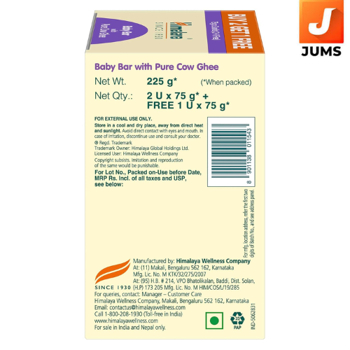 Himalaya Baby Bar with Pure Cow Ghee 75g|B2G1|Ph5.5|Aloe Vera|Soap Free |Safe For Newborn|For Baby's Sensitive Skin From Day 1|No dryness|No Parabens|No Synthetic color|Dermatologically Tested|Pediatrician Evaluated