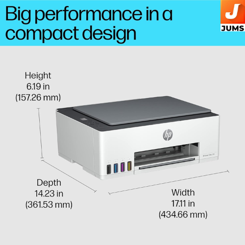 The HP Smart Tank 580 All‑in‑One Wi‑Fi Colour Printer is a high‑volume, ink‑tank multifunction printer built for home, student, and small office environments. It combines print, scan, and copy capabilities with wireless connectivity and a cost‑efficient refillable ink system — delivering reliable everyday performance while keeping running costs low