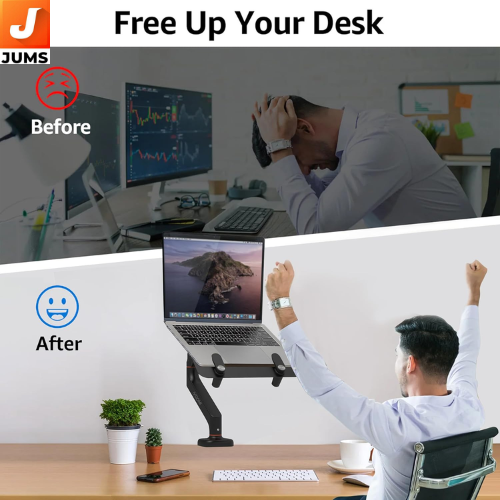 Lappy Arm Laptop Stand for Desk with Detachable Tray | Gas Spring and Adjustable Laptop arm with Grommet Mounting Base for up to 10KG & 21″ Devices | Swivel, Extend, Tilt & Height Adjustments