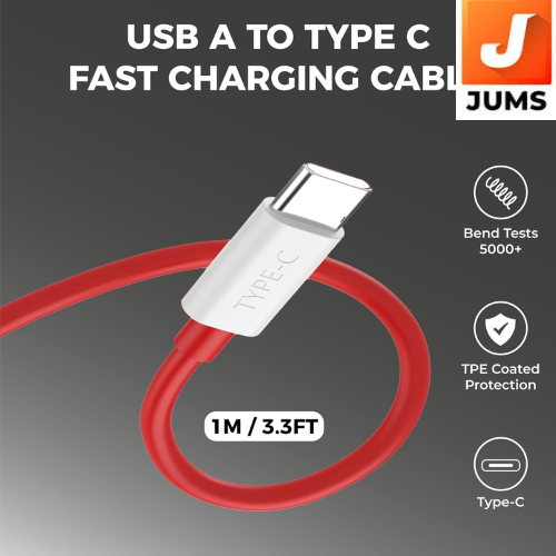 USB-A to Type C Cable Combo, Compatible with OnePlus, Realme, Xiaomi, Redmi, Oppo, Vivo & Other Smartphones, Type C Charger Supports Dash, Warp, Vooc,SuperVooc