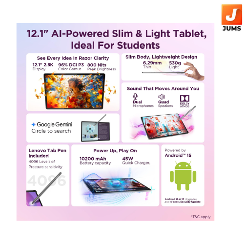 Display:- 12.1 Inch Screen | 2.5K Display | Resolution: 2560x1600 | 600nits (typical) / 800nits (Peak) | 96% DCI-P3 | TÜV Lowblue Light