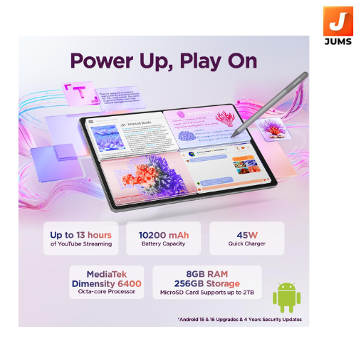 800nits Peak Brightness |8GB RAM + 256GB ROM (Expandable upto 2TB)| MediaTek Dimensity 6400| 10200mAh|4 Speakers with Dolby Atmos|Luna Grey