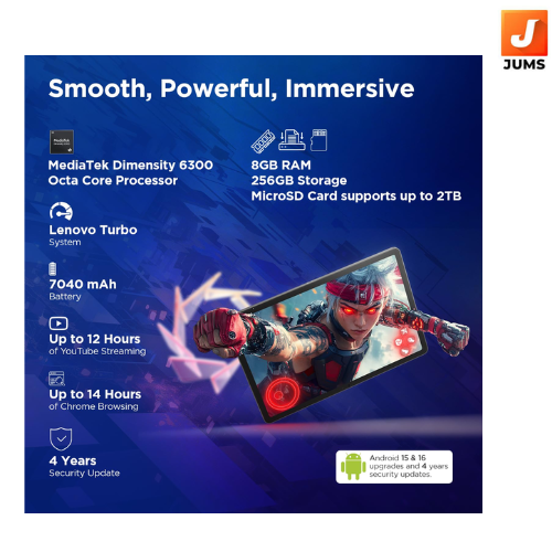 8GB RAM, 256GB ROM| MediaTek Dimensity 6300| 7040mAh|4 Speakers| USB-C |Wi-Fi | Luna Grey