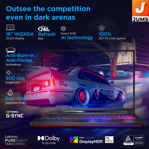 Size & Panel: 16″ WQXGA (2560×1600) OLED display — deep contrast with vibrant colors and wide viewing angles. Ruralrobo Refresh Rate: 240 Hz — ultra‑smooth motion and responsiveness for competitive gaming. Ruralrobo Color & HDR: 100 % DCI‑P3, DisplayHDR True Black 1000, Dolby Vision®, and NVIDIA G‑SYNC® for tear‑free, immersive visuals. Ruralrobo Brightness: ~500 nits — bright and accurate for HDR content.