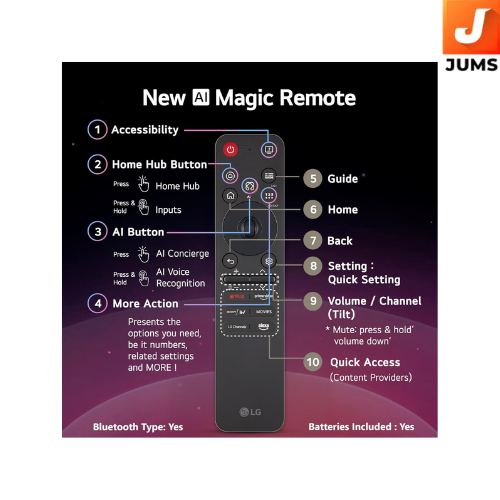 | Included Components | 1 QNED 4K TV, 1 Magic Remote Control with 2 AAA Batteries |