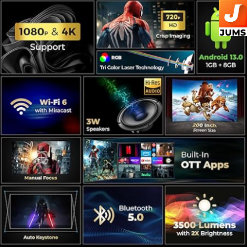 The Lifelong Lightbeam Smart Projector is a budget‑friendly smart home projector that brings big‑screen entertainment into your living room, bedroom, or outdoor space without the need for extra devices. Built with Android 11 OS and native 720p HD resolution, this projector supports 4K content input (downscaled to its native resolution) and offers versatile features for movies, streaming, gaming, and presentations.