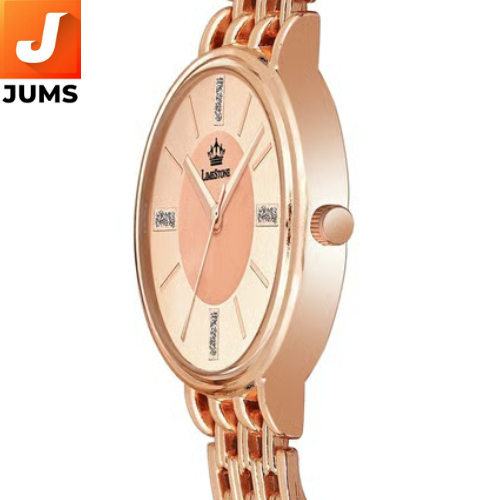 The Limestone Modern Muse Analog Watch (Quartz, Rose Gold) is a beautifully crafted timepiece designed to add sophistication and elegance to any woman’s wardrobe. Powered by quartz movement, this watch ensures accurate timekeeping with a long-lasting battery. Its analog display offers a classic look with easy-to-read hour and minute hands, making it a timeless addition to any collection. What makes this watch stand out is its rose gold finish, which lends a touch of modern luxury and femininity. The metal or stainless steel band coated in rose gold complements the watch’s refined design, making it perfect for both casual and formal wear. Whether worn with office attire, during an evening out, or for a special event, the rose gold tone enhances its versatile appeal, making it suitable for multiple occasions.