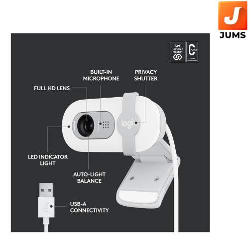 Auto-Light Balance, Built-in Mic, Privacy Shutter, USB-A, for Microsoft Teams, Google Meet, Zoom and More- OffWhite