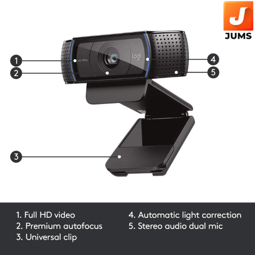 Make a strong impression in your video conference calls with Logitech C920, featuring a diagonal, fixed 78-degree field of view to frame you and your space in full HD at 1080p/30fps or 720p/30fps.