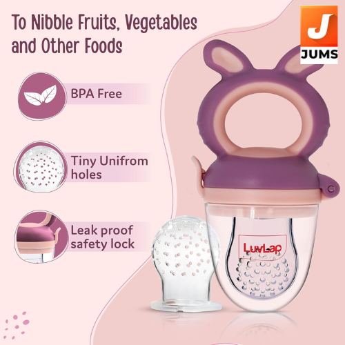LuvLap Silicone Food/Fruit Nibbler with Extra Mesh, Soft Pacifier/Feeder, Teether for Baby, Infant, Bunny Violet & Pink